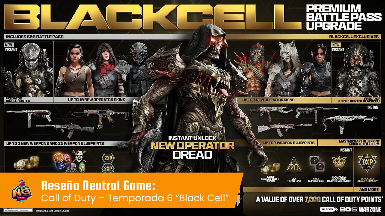 La Temporada 6 y el Black Cell logran que cada partida se sienta especial. Predator y Dread destacan por su diseño y presencia, las armas y remates agregan espectáculo sin afectar la jugabilidad, y los skins y cosméticos hacen que el evento sea memorable. Es un contenido pensado para los jugadores que buscan tanto competir como disfrutar del lado más temático y divertido del juego.