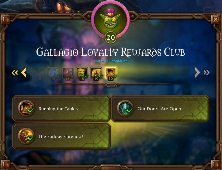 Han pasado veinte semanas desde que Liberation of Undermine llegó a World of Warcraft, y por fin los jugadores pueden alcanzar el rango máximo de renombre con el Gallagio Loyalty Rewards Club. ¿La recompensa por tanta lealtad? Nada menos que el codiciado título de “Apostador %s”, el teletransporte a la Senda de la escalera de color, y la joya de la corona: la montura Flarendo el Furioso Flarendo el Furioso.