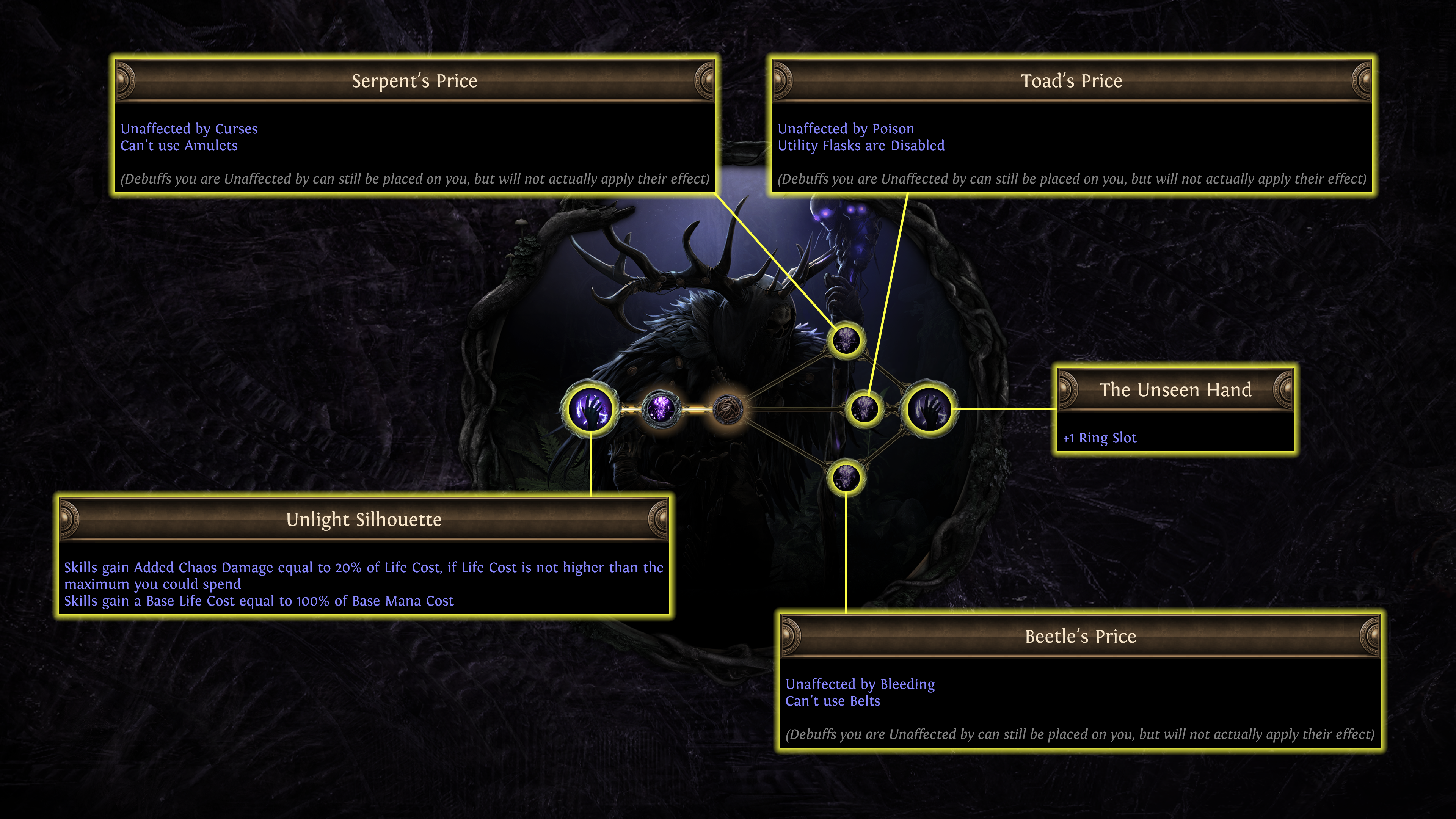 Hay 16 implantes disponibles, y el Árbol del Génesis también produce Foulborn, esferas que pueden deformar los implantes para potenciar su efecto.