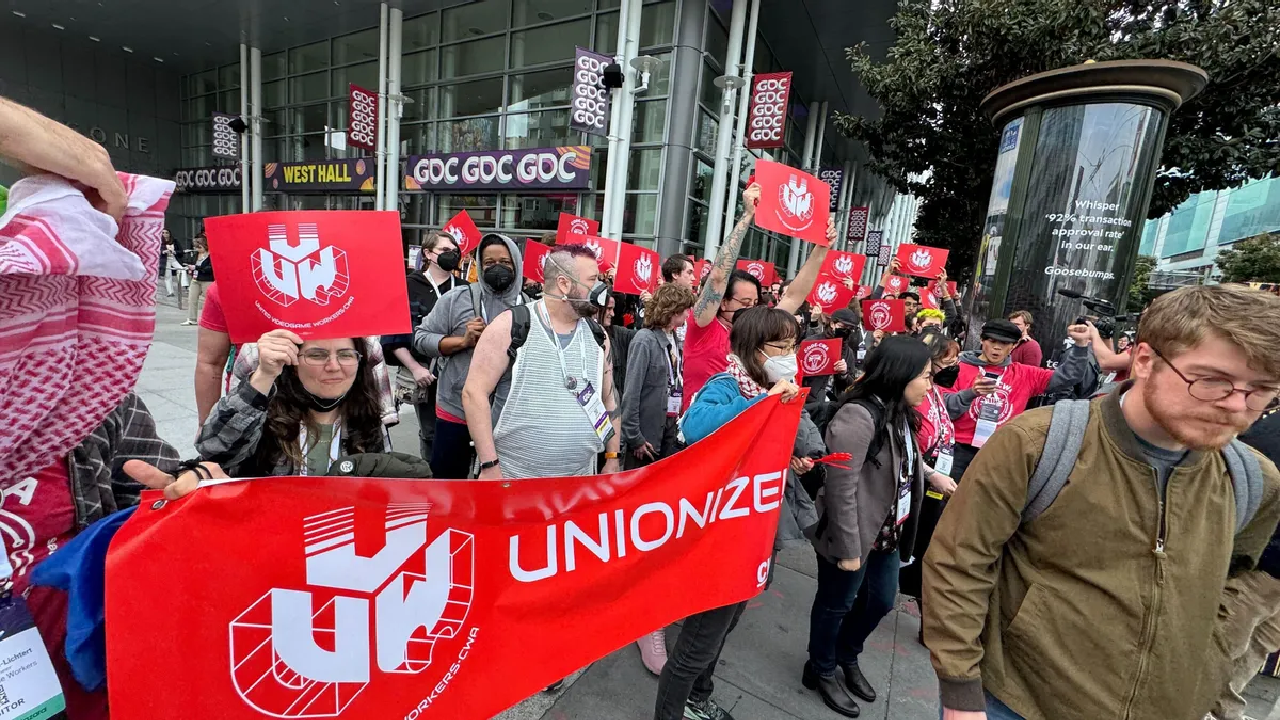 Vestidos con camisetas rojas brillantes y portando pancartas contundentes, los manifestantes pertenecen a United Videogame Workers (UVW), un sindicato de afiliación directa que opera en toda Norteamérica y forma parte de Communications Workers of America. Su mensaje fue claro: la industria que aman está siendo “explotada hasta los huesos”, y The Game Awards era el escenario ideal para hacerlo visible.