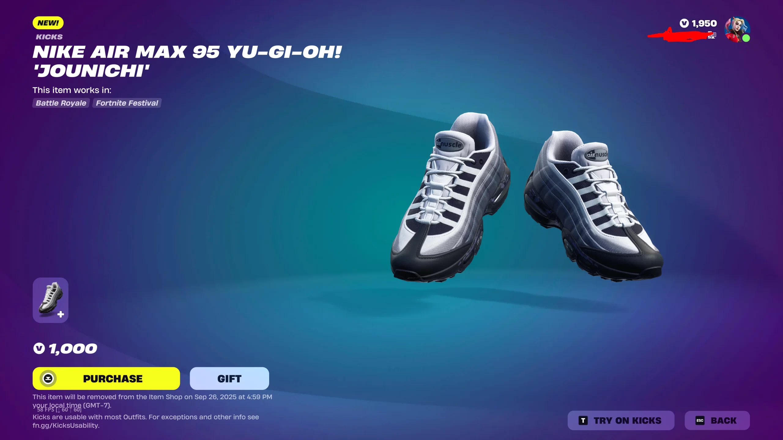 Estas Kicks aparecieron en el Capítulo 6, Temporada 4, y son parte de la línea de colaboraciones de Fortnite con Nike, que en esta ocasión se unió a Konami para celebrar la icónica franquicia de cartas. La versión digital acompaña al lanzamiento físico de la colección Nike x Yu-Gi-Oh!, presentada este septiembre con modelos inspirados en Joey Wheeler (Jounichi) y otros personajes clásicos.
